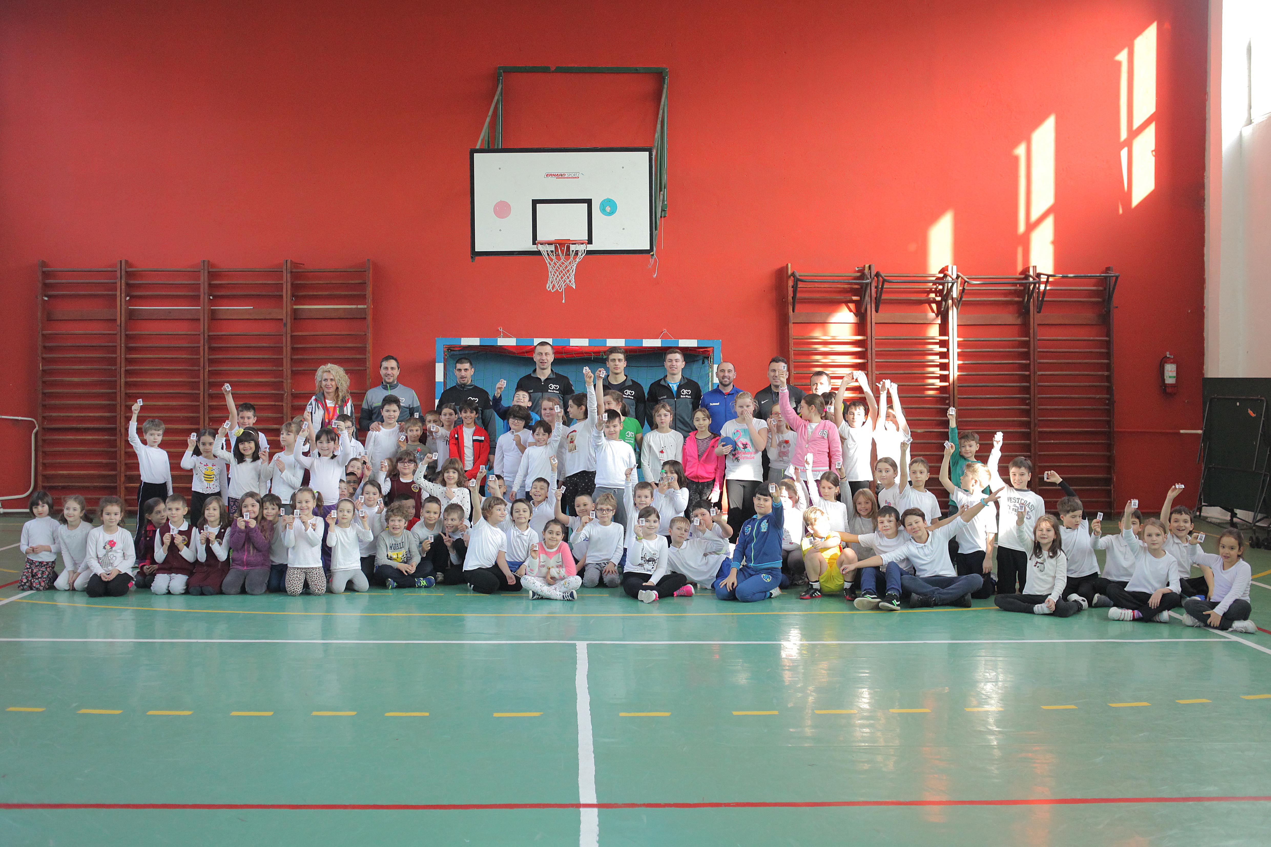 70 de copii din clasele 0, 1 și 2 de la Școala “Nicolae Iorga” nr. 11, s-au distrat alături de sportivii noștri: Alexandru Sabău, Yurii Pop, Tudor Botea și Mihai Bogdan, sub îndrumarea lui Cristian Băban și Raul Fotonea. Momentul preferat al copiilor a fost concursul de predare a ștafetei.