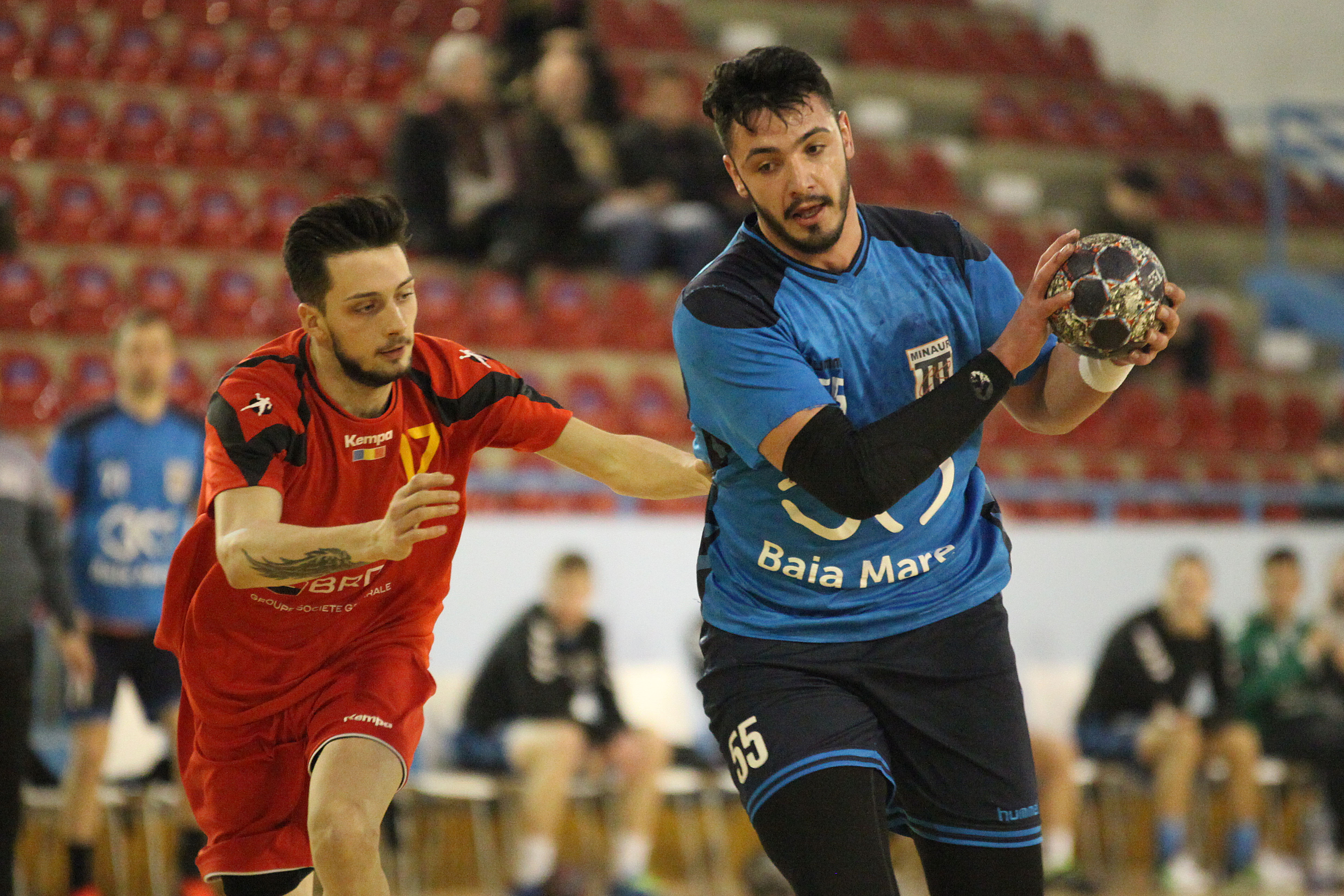Începutul de joc a fost sărac în goluri, marcându-se doar șase goluri în 12 minute, scor 4-2. Oaspeții s-au apropiat la un singur gol și aceasta a fost diferența până la mijlocul reprizei. De la scorul de 6-5, CS Minaur a marcat trei goluri consecutive și s-a distanțat la 9-5. Diferența s-a mărit o dată cu trecerea timpului, iar la pauză CS Minaur a condus cu 16-8.